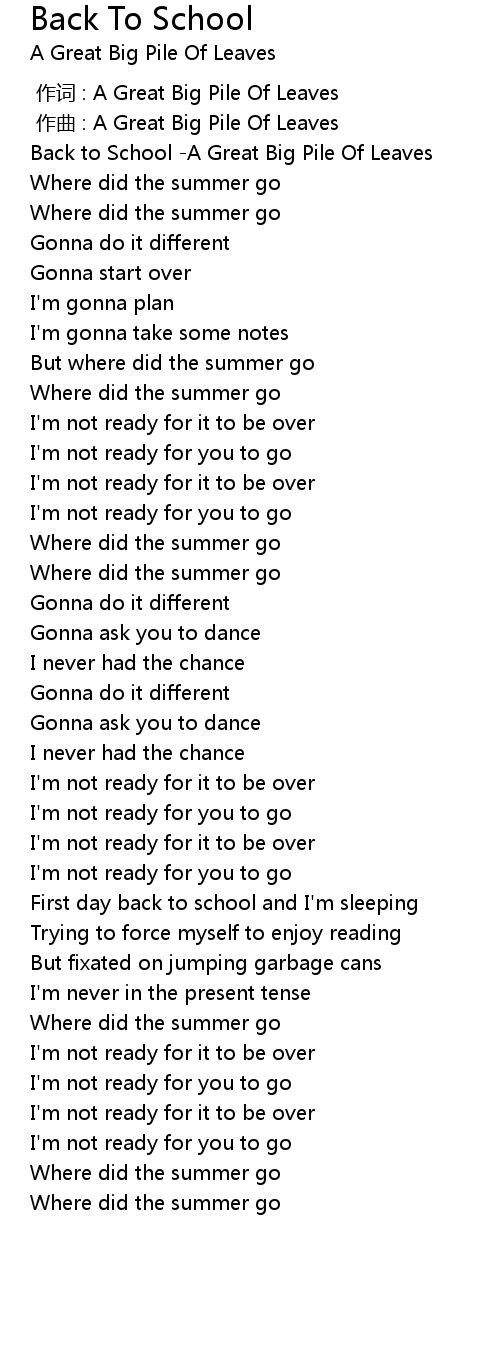 | [00:00.00] | Back to School A Great Big Pile Of Leaves |