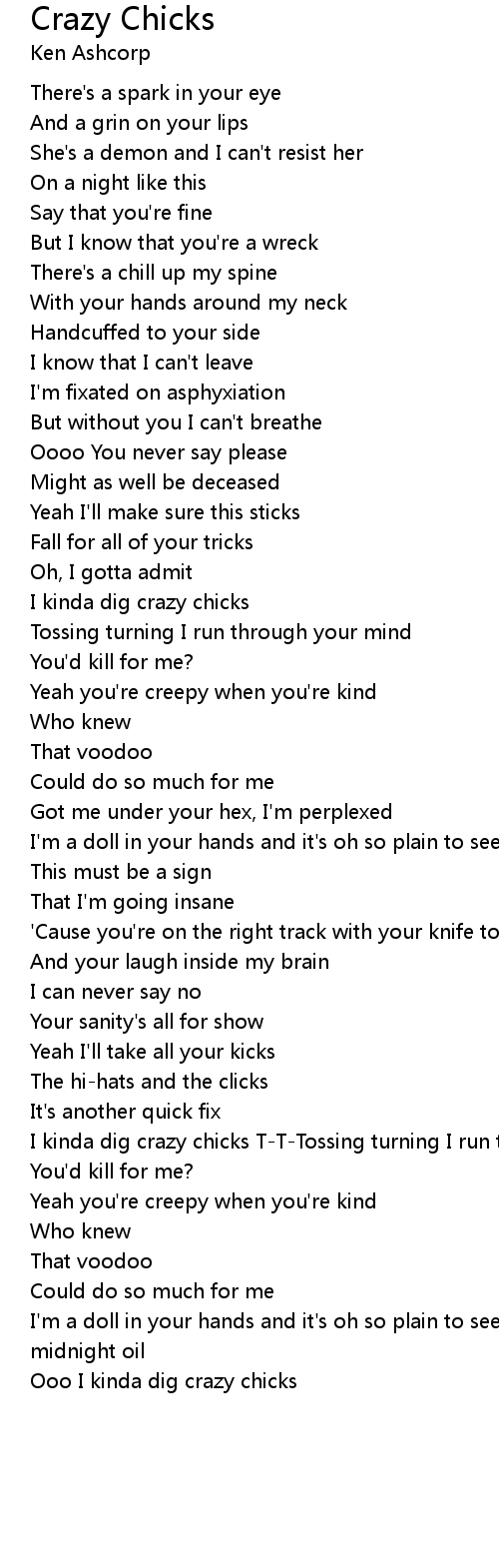 I kinda dig crazy chicks T-T-Tossing turning I run through your mind |