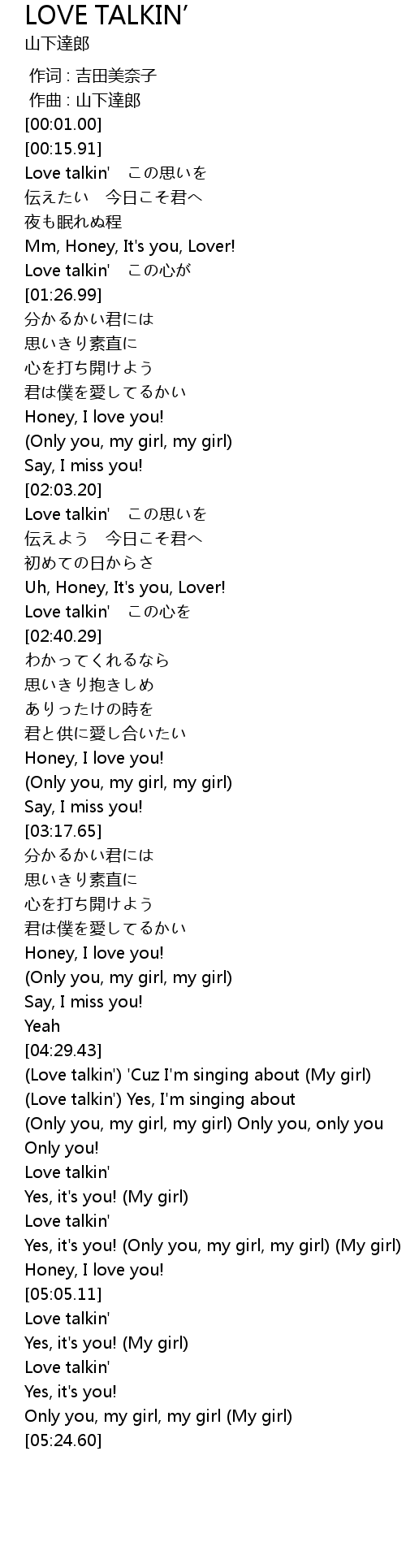 | [04:34.58] | (Love talkin') Yes, I'm singing about |