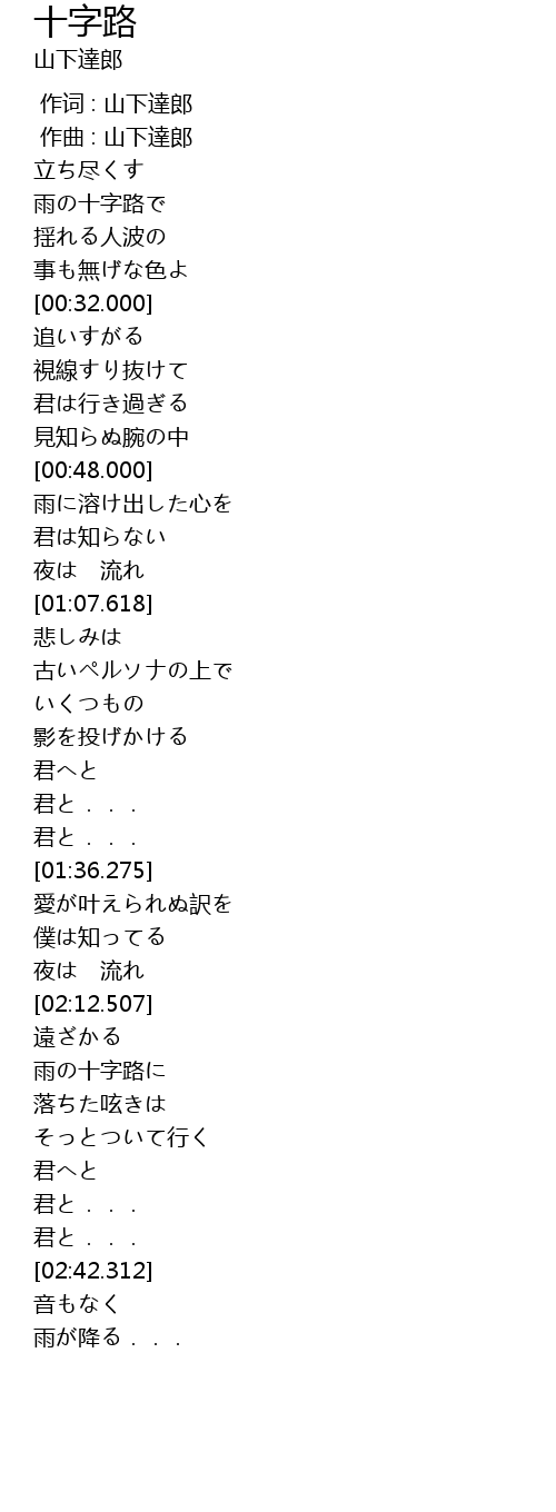 | [00:19.318] | 雨の十字路で |