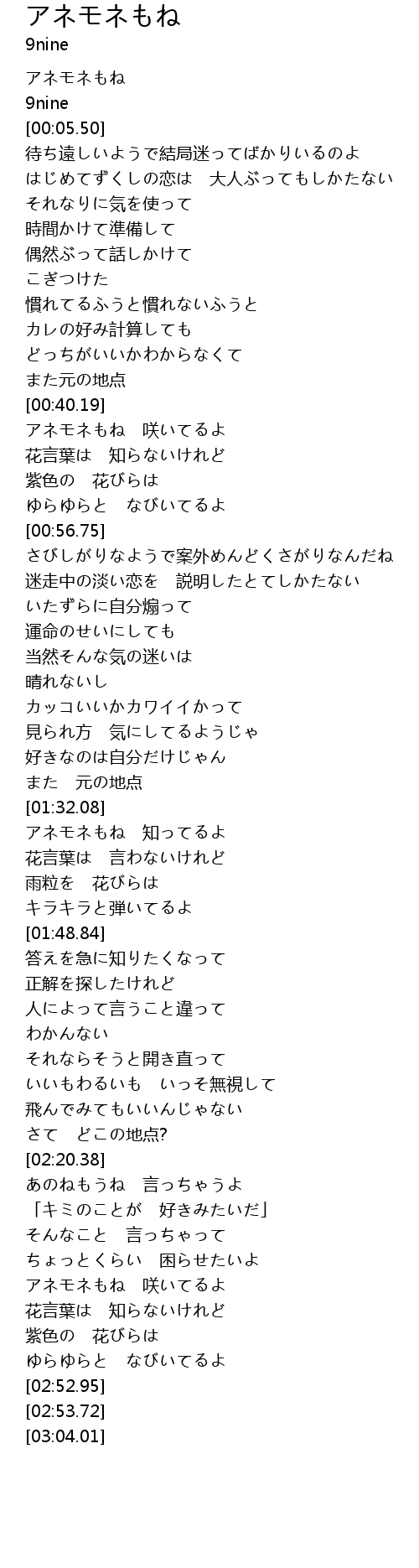 | [02:37.05] | アネモネもね 咲いてるよ |