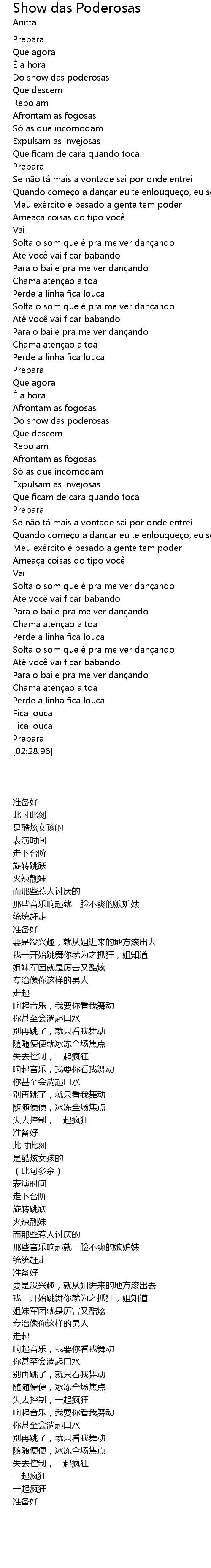 | [00:20.39] | Do show das poderosas |