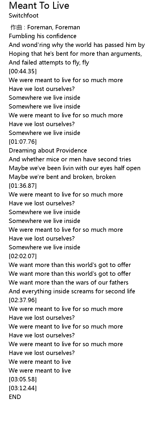 | [03:01.88] | We were meant to live |