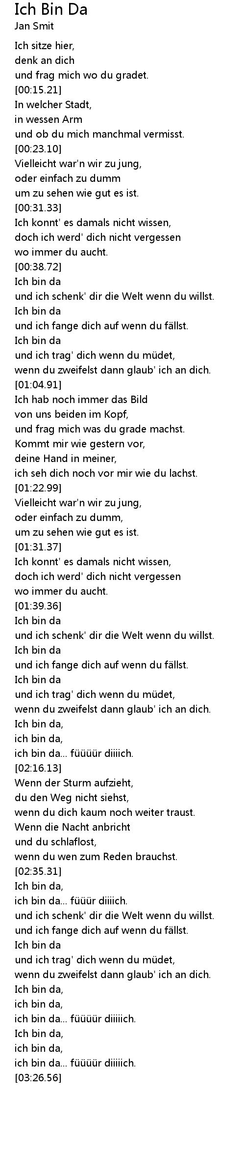 | [01:45.32] | Ich bin da |