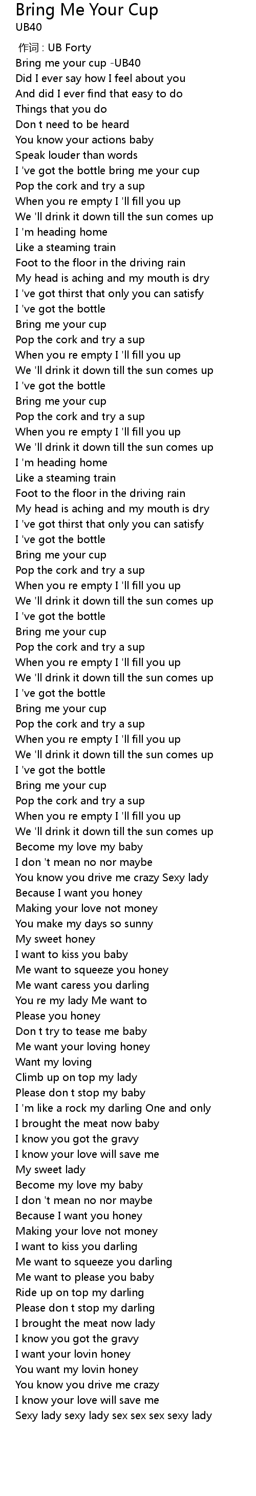 | [00:01.531] | Bring me your cup UB40 |