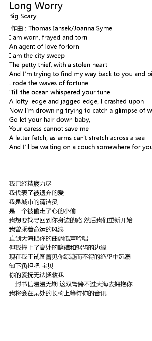 | [00:00.000] | zuo qu : Thomas Iansek Joanna Syme |