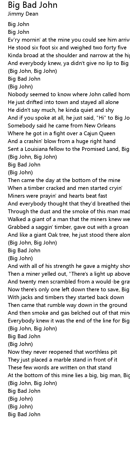 Sent a Louisiana fellow to the Promised Land, Big John |