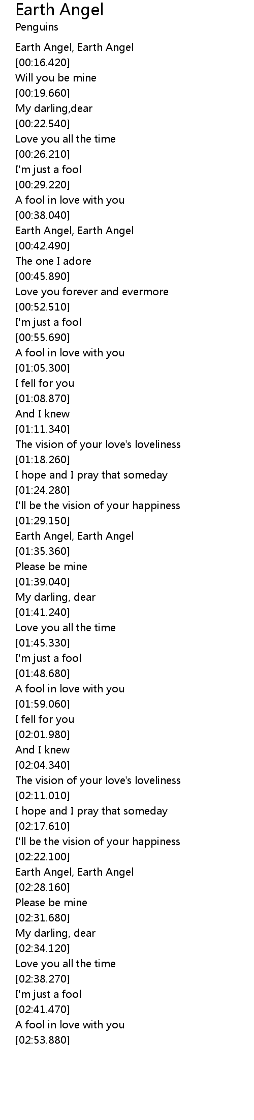 [00:38.160] Earth Angel, Earth Angel