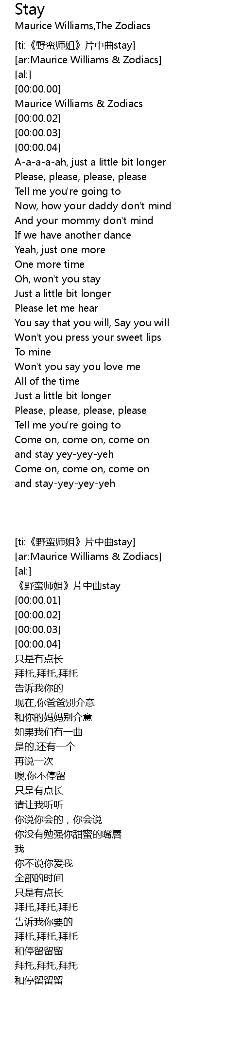 | [ti:《野蛮师姐》片中曲stay] | |