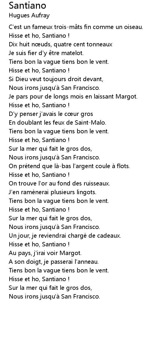 | [00:42.00] | Hisse et ho, Santiano ! |