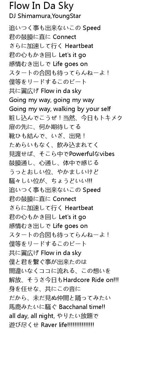 | [03:21.00] | 共に翼広げ Flow in da sky |