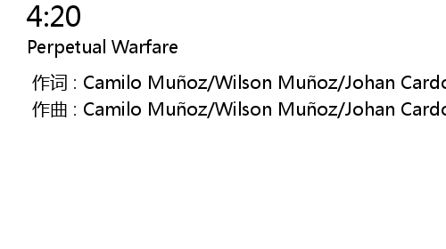 | [00:00.000] | 作曲 : Camilo Muñoz/Wilson Muñoz/Johan Cardona/Steven Layton |