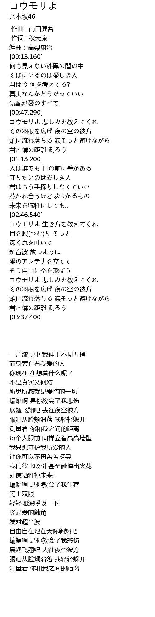 | [03:12.800] | コウモリよ 悲しみを教えてくれ |