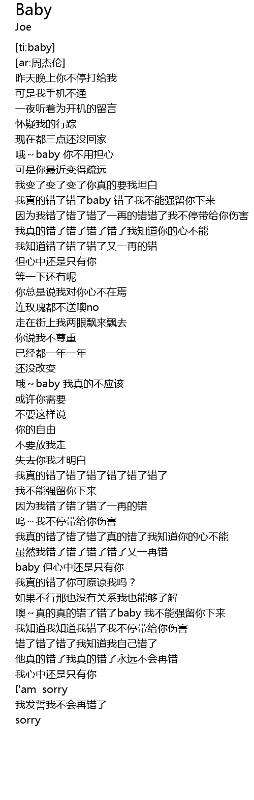 | [00:57.520] | 我真的错了错了baby 错了我不能强留你下来 |