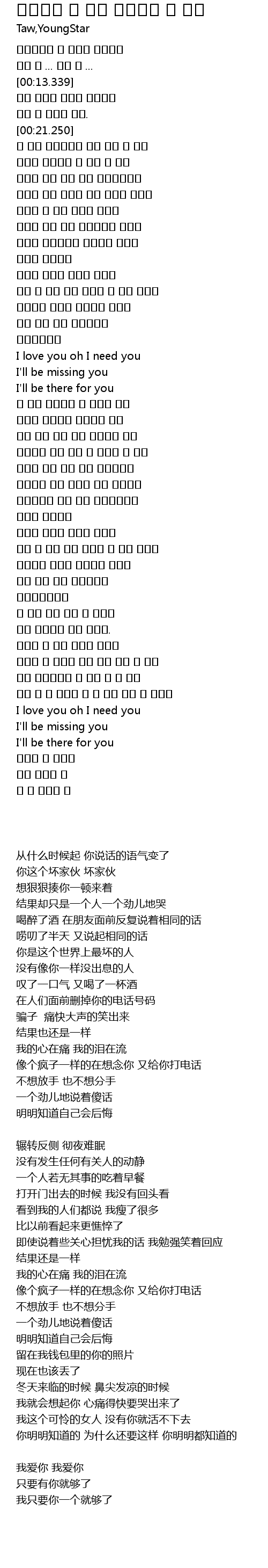 | [02:48.260] | 니가 더 잘 알면서 왜 날 떠나 너도 잘 알면서 |