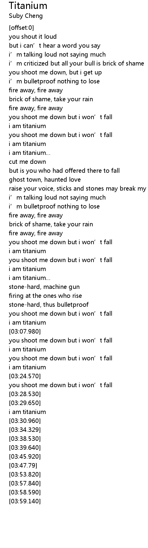 | [02:02.420] | i' m bulletproof nothing to lose |