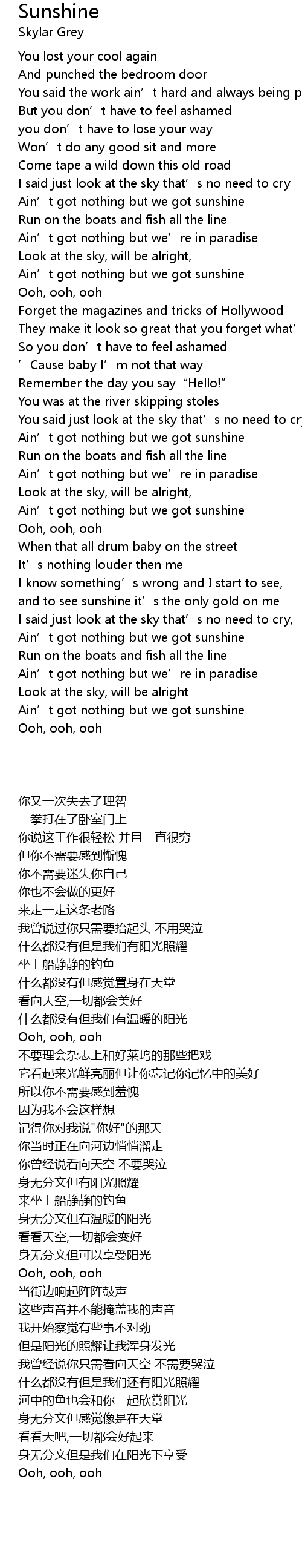 | [03:00.560] | Ain’t got nothing but we got sunshine |