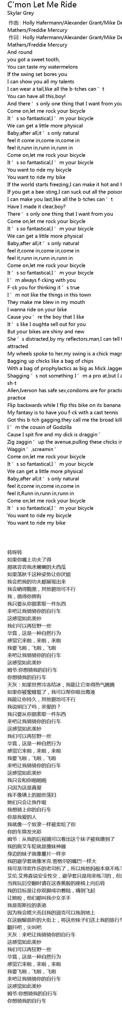 | [00:46.765] | 来吧让我骑骑你的自行车 |