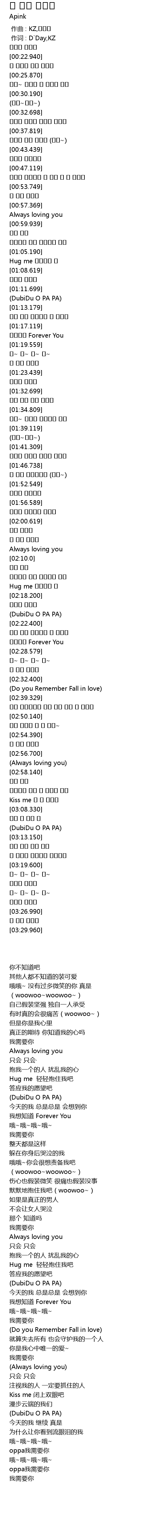 | [03:05.580] | Kiss me 두 눈 감아줘 |