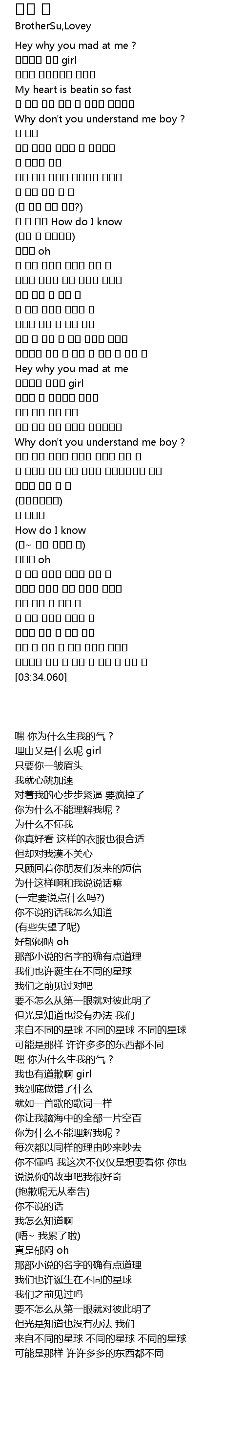 | [02:01.820] | 嘿 你为什么生我的气? |
