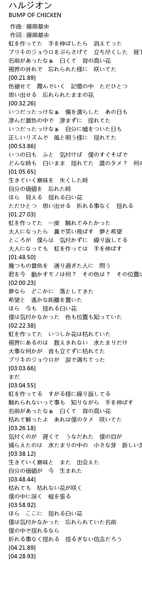 | [03:21.23] | 枯れて解ったよ あれは僕のタメ 咲いてた |
