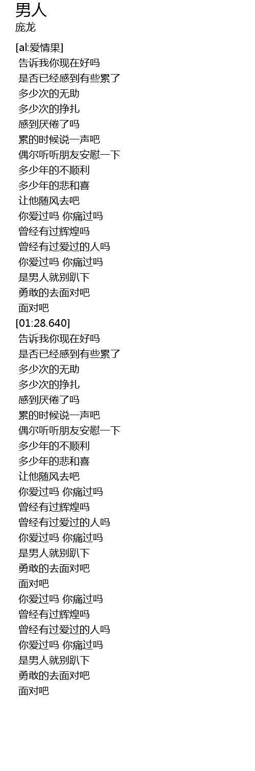 | [01:16.680] | 是男人就别趴下 |