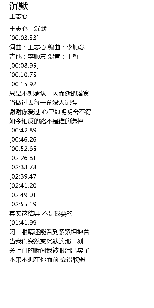 | [00:05.12] | 词曲:王志心 编曲:李顺意 |