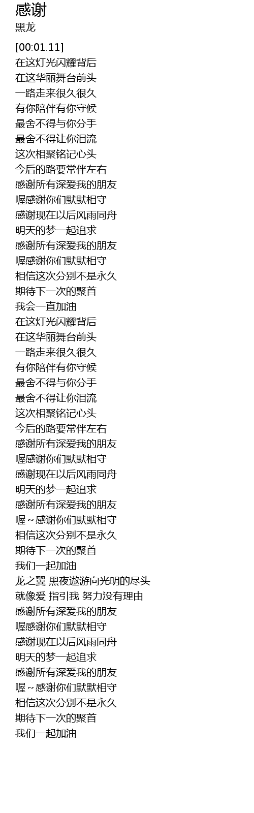 | [03:35.27] | 感谢现在以后风雨同舟 |