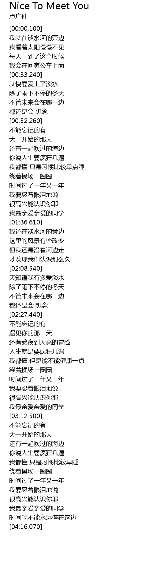| [03:00.460] | hěn gāo xīng néng rèn shi nǐ yé |