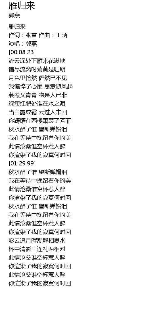 | [00:51.09] | 当白露成霜 云过人未回 |