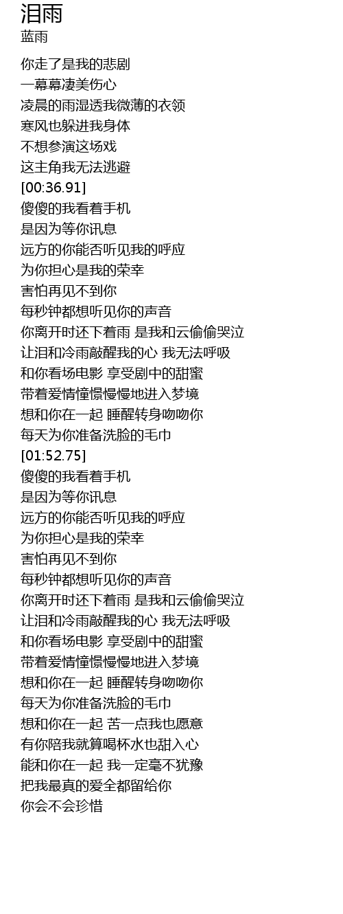 | [03:01.06] | 让泪和冷雨敲醒我的心 我无法呼吸 |