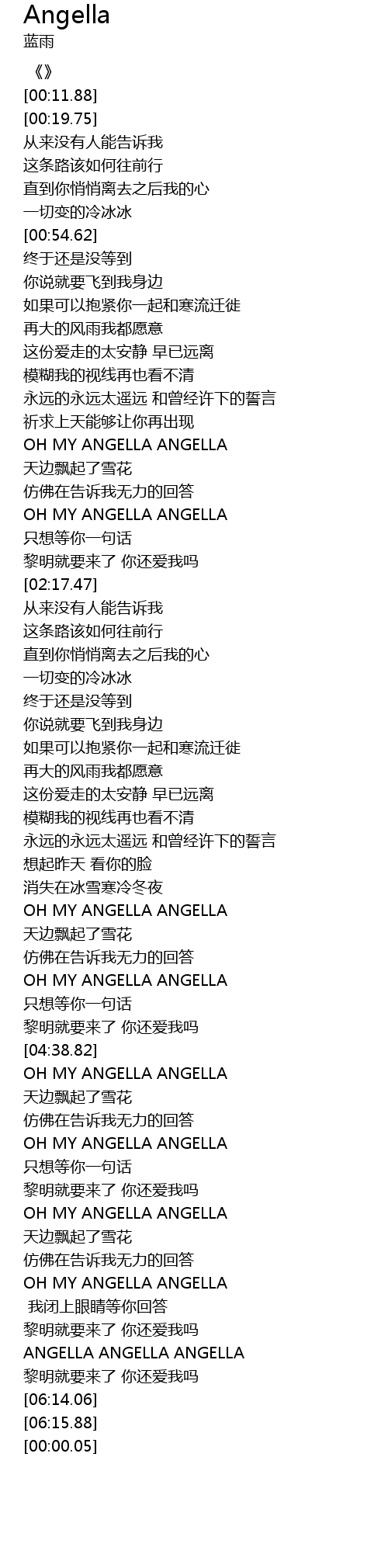 | [05:17.81] | OH MY ANGELLA ANGELLA |