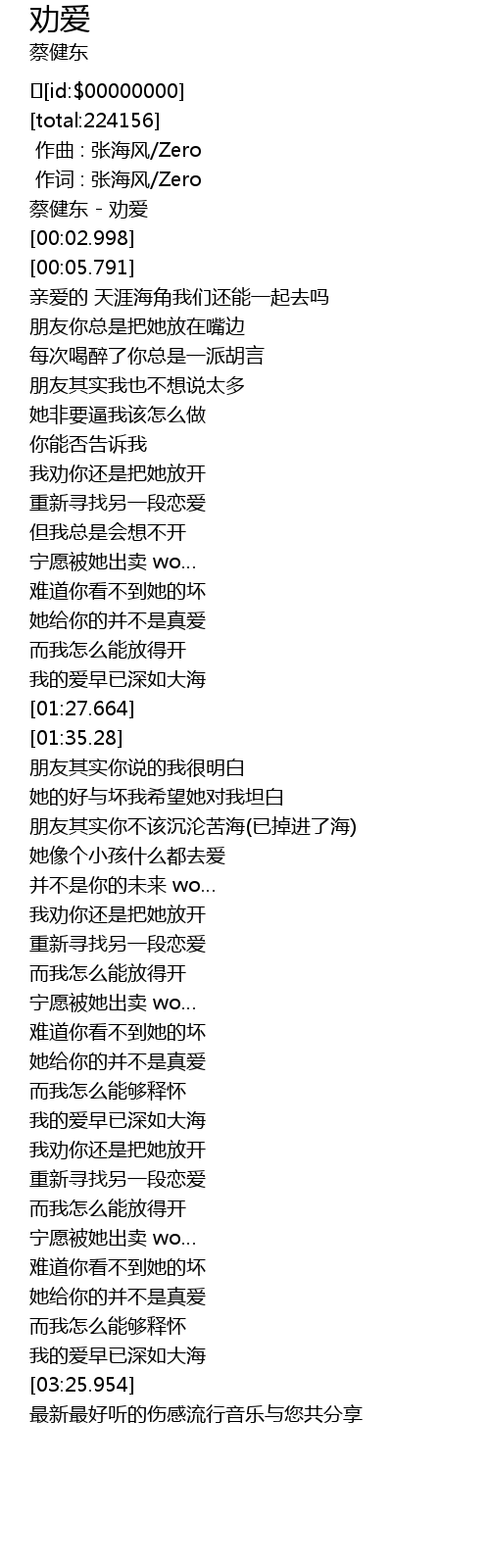 | [00:00.611] | 蔡健东 - 劝爱 |