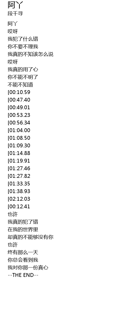 | [00:00.06] | 阿丫 |