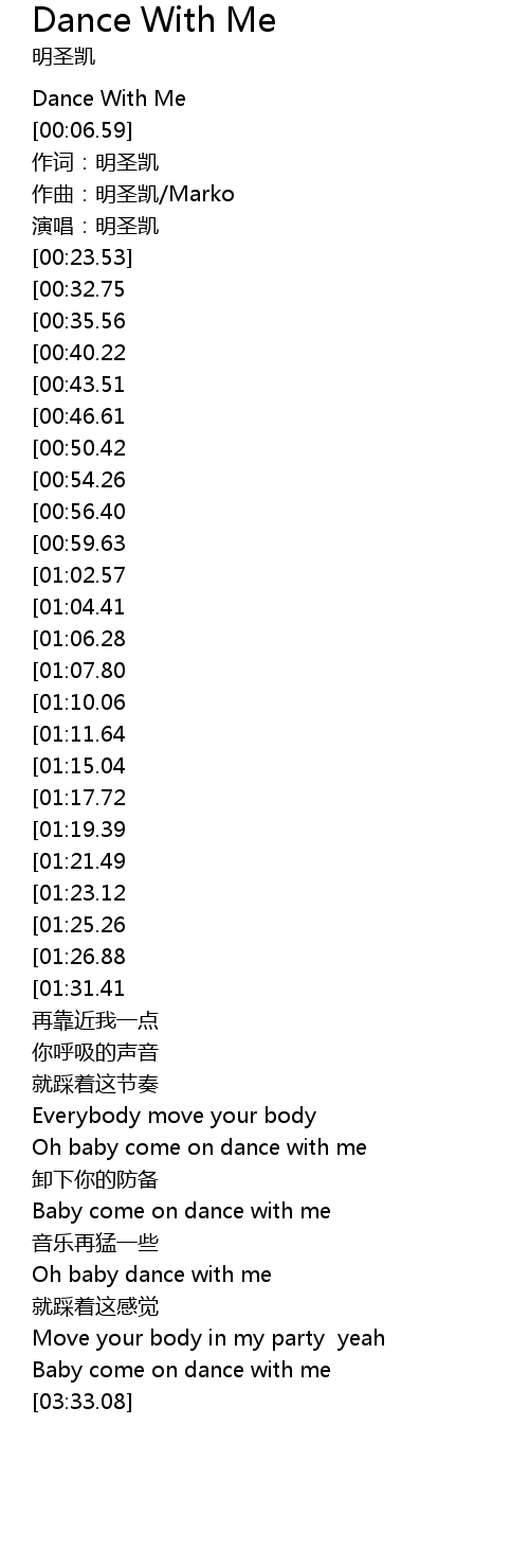 | [02:33.50][01:04.41] | Baby come on dance with me |