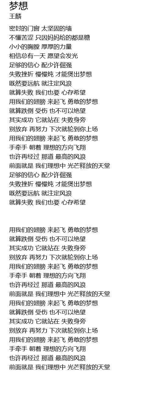 | 用我们的翅膀 来起飞 勇敢的梦想 | |