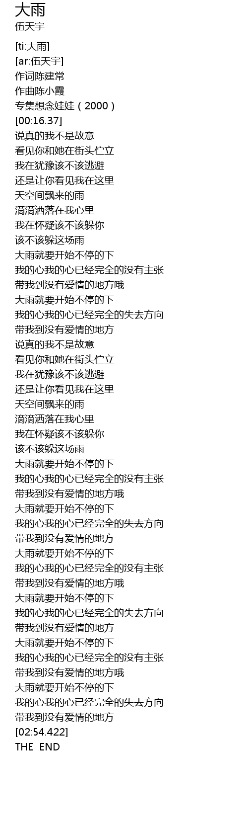 | [02:51.499] | dà yǔ jiù yào kāi shǐ bù tíng de xià |