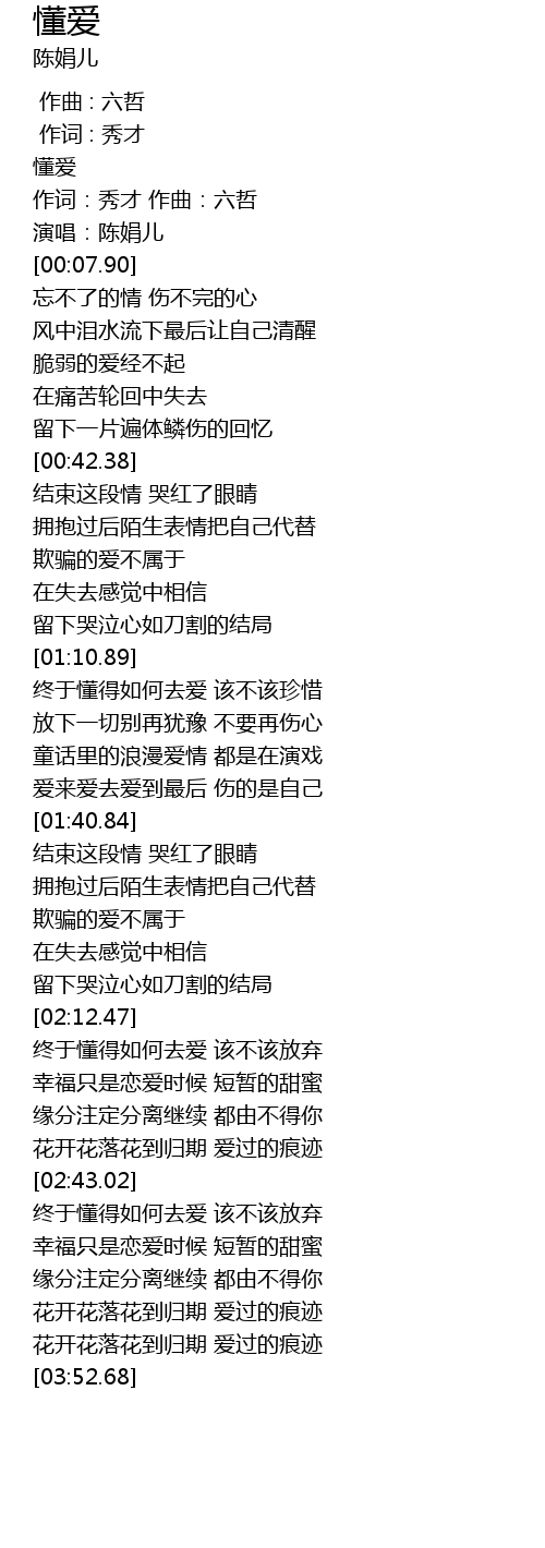 | [00:01.90] | 懂爱 |