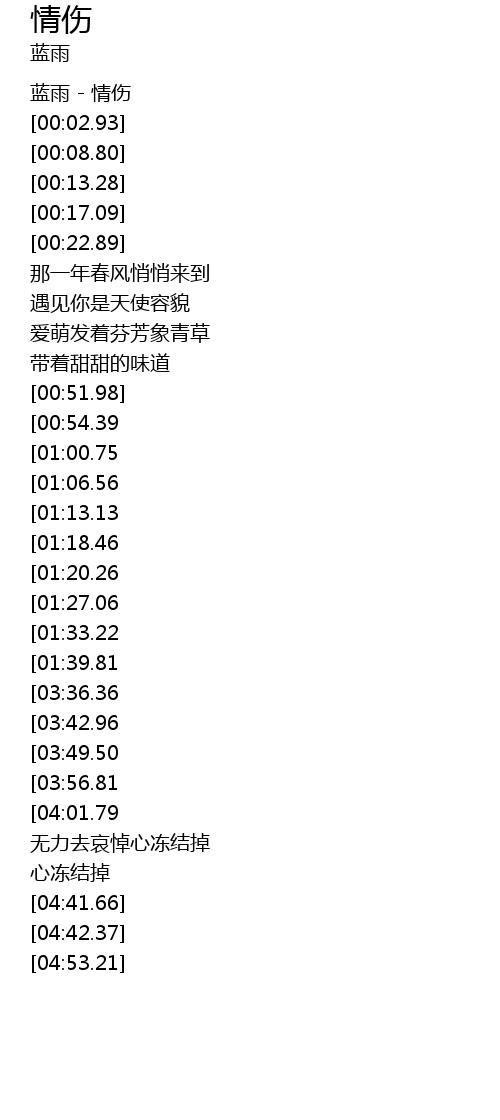 | [00:00.00] | 蓝雨 - 情伤 |