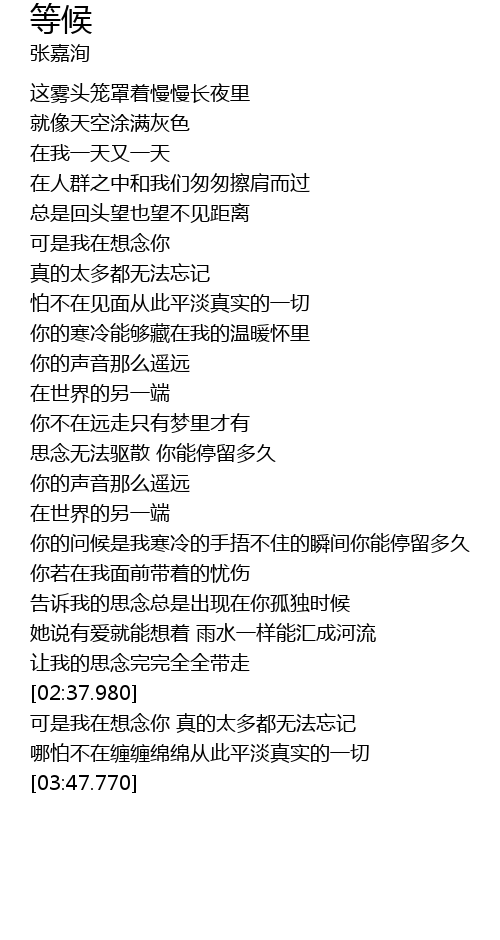 | [02:38.620] | 可是我在想念你 真的太多都无法忘记 |