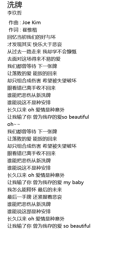 | [02:56.260] | 谁能把悲伤从新洗牌 |