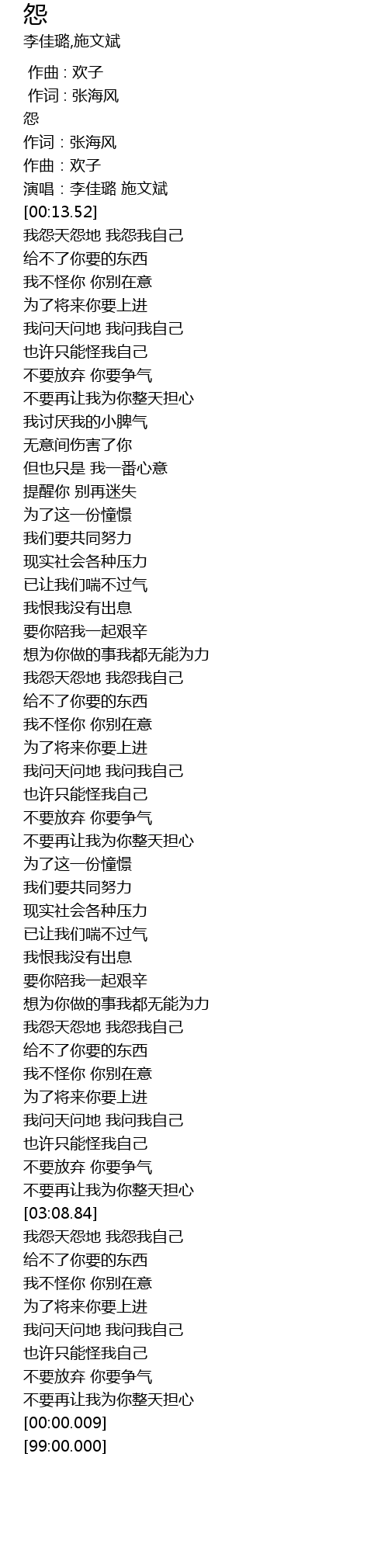 | [03:38.71] | 我怨天怨地 我怨我自己 |