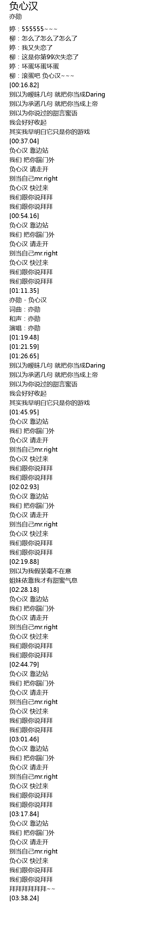 | [03:22.68] | 负心汉 请走开 |