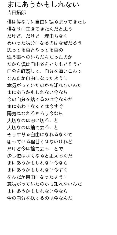 | [01:55.11] | まにあうかもしれない今すぐ |