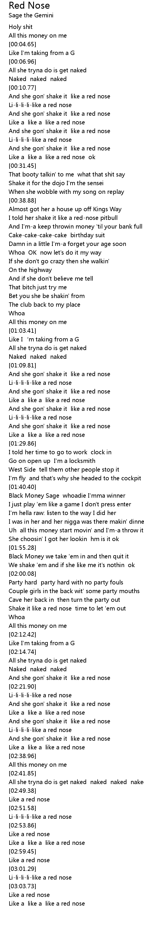 | [00:41.79] | I told her shake it like a red-nose pitbull |