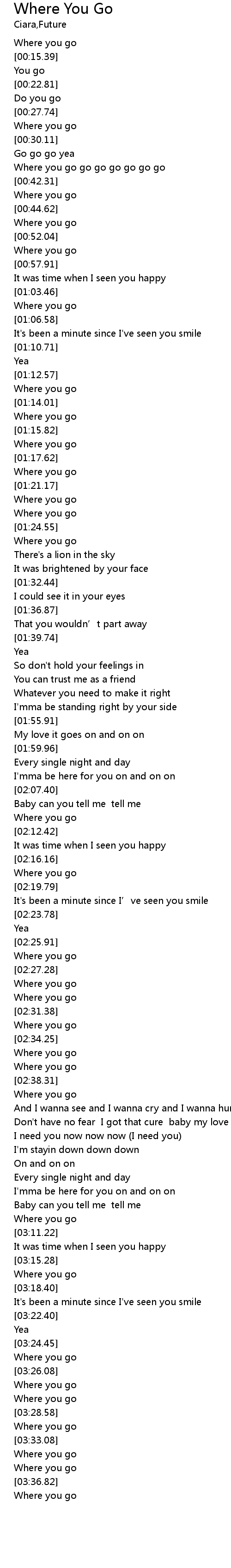 | [03:19.27] | It's been a minute since I've seen you smile |