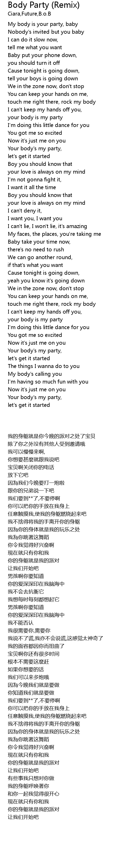 My body is your party, baby |