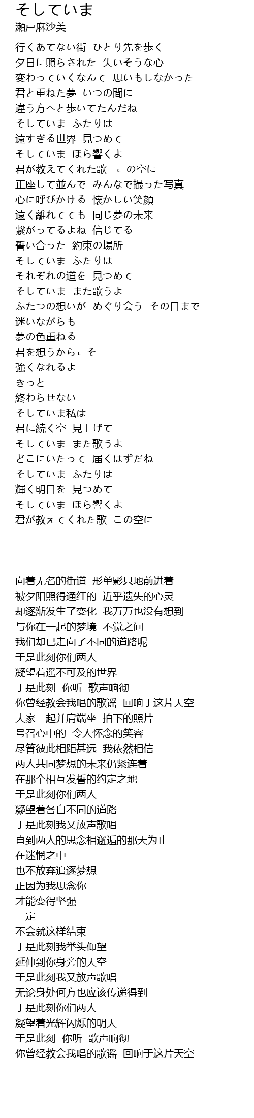| [01:56.830] | 遠く離れてても 同じ夢の未来 |