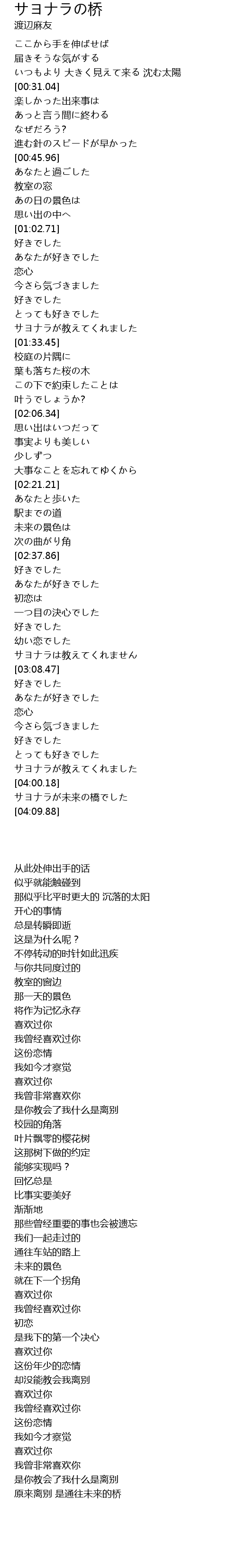| [04:01.60] | 原来离别 是通往未来的桥 |