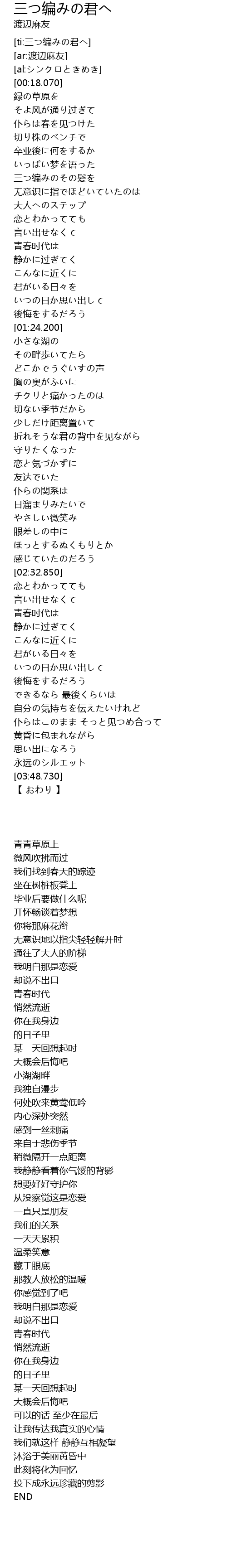 [ti:三つ编みの君へ] |